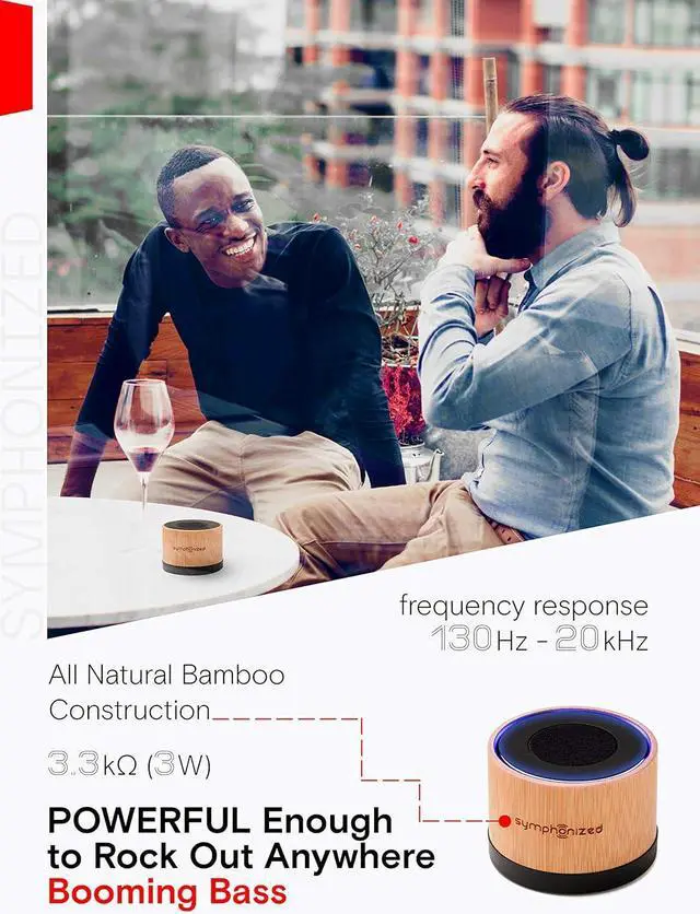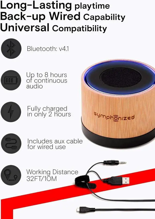 Aux cable included for wired use. The Symphonized NXT Bluetooth Wireless Speaker ensures the party never gets cut short. Handcrafted from genuine wood, this speaker is a cut above the rest, providing sound that will be the highlight of your backyard get together, while still being small enough to fit into your backpack or purse.