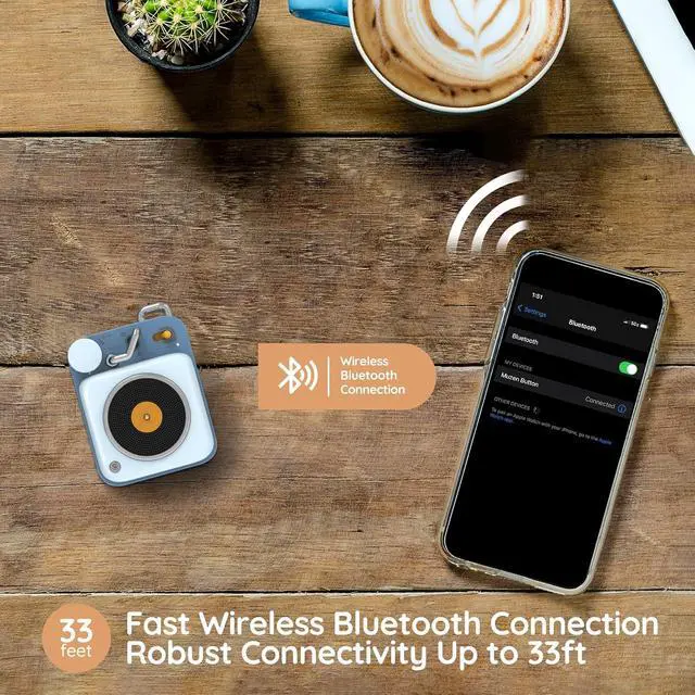 The MUZEN Button Small Speaker uses Bluetooth 4.2 technology to connect to your device, providing a quick and seamless connection with a range of up to 33 feet. This reliable connectivity makes it an excellent choice for mobile devices.