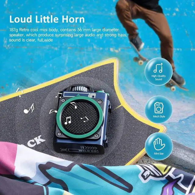 How did we get started? Youthful and Fashionable Wild Go Mini Portable Bluetooth Speaker Your Excellent Outdoor Partner hero-video Fans Live Show for The Best Wireless Waterproof Speakers video Lighter/Compact/Carry Easily Large diameter & Excellent Sound Finger Control & Metal Knob Anti-Skid&Anti-Drop Travel/Female/Cool Best Wireless Speakers Best Male Gift Outdoor Bluetooth Speaker Born for Action