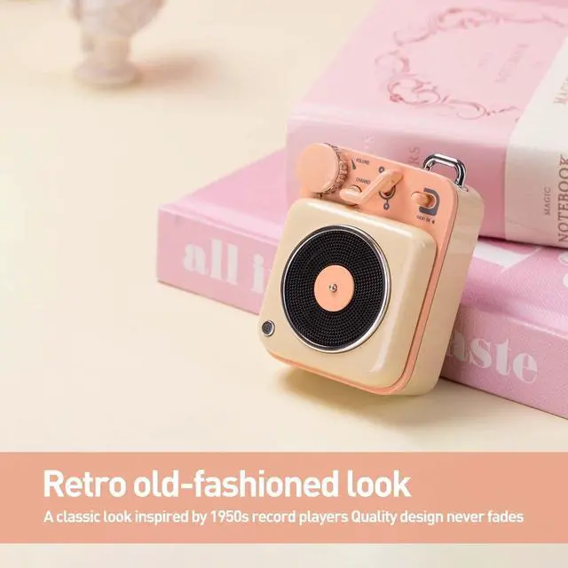 Mini Size But Surprisingly Loud Volume- With 5-watt amplifiers processing audio output, this mini retro speaker sounds amazingly richer and louder without any distortion. The compact retro Bluetooth speaker only takes a space of 2.48 x 1.85 x 1.18 inches with a 400mAh built-in rechargeable battery, up to 8 hours play time.