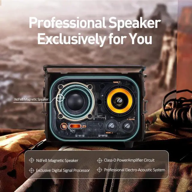 Superior Sound QualityWith a high-quality NdFeB magnetic speaker and unique electro-acoustic carefully designed by professionals, Muzen Wild Radiooo Bluetooth Speaker ensures that the clarity and quality of the sound reach an excellent level. Whether it is in bass or treble, this rugged speaker can accurately restore every detail of music, allowing you to immerse yourself in the world of music