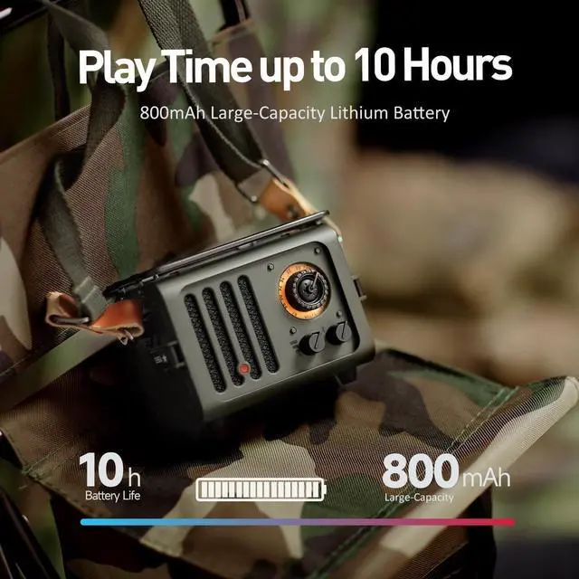 Long Battery LifeWith the built-in 800mAh battery, this portable speaker provides up to 10 hours of FM radio or 6 hours of Bluetooth streaming on a single charge. Fully recharges in 3 hours via USB