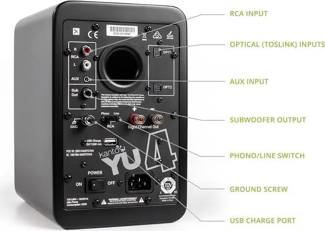 REMARKABLE SOUND Enclosed in handcrafted MDF cabinets measuring 8.7" tall, YU4s 1 silk dome tweeters and 4 Kevlar drivers deliver crisp highs and wonderfully balanced mid-range, faithfully reproducing all your favorite tunes.