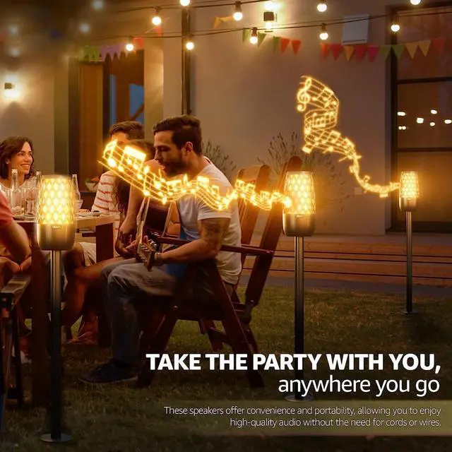 Warm, atmospheric lightening meets rich, vibrant sound with this stunning IXTECH Bluetooth speaker designed like a classic outdoor tiki torch. Whether youre relaxing in the backyard on your desk or youre hosting a party for all your friends and family music and lightening can play a big part in making it a comfortable or exciting success. We created the IXTECH Outdoor Bluetooth Speaker to provide all that and so much more. A beautifully designed speaker that looks like a small tiki torch and features multiple lighting modes, you can turn up the bass to get the party started or enjoy a little time relaxing and recharging with the music and lights down low. In fact, this versatile and portable Bluetooth speaker can be mounted on a wall, hung up from overhead, placed on a table, or even stuck in the ground on a mounting pole. And with three adjustable lighting options and a 360° surround sound experience its the perfect choice for setting the tone for your next event. Product Details: Outdoor 5.0 Bluetooth Speaker Light-Up LED Tiki Torch Design Free-Standing or Mountable Linkable Up to 100 Speakers Three (3) Lighting Modes Expansive 360° Surround Sound Long-Distance Wireless Connectivity (Up to 82) Supports 3.5mm AUX Connection Expand your listening experience and create a relaxing atmosphere with this light-up LED Bluetooth speaker from IXTECH thats designed to enhance your mood with high-fidelity music in every direction.