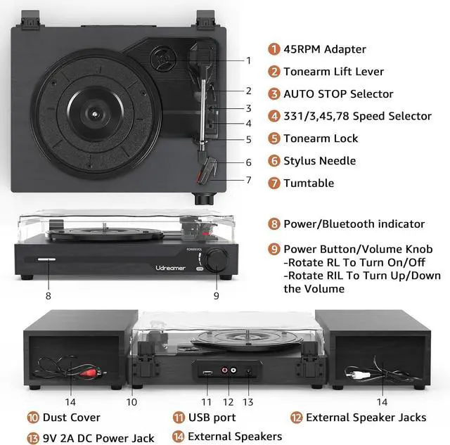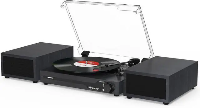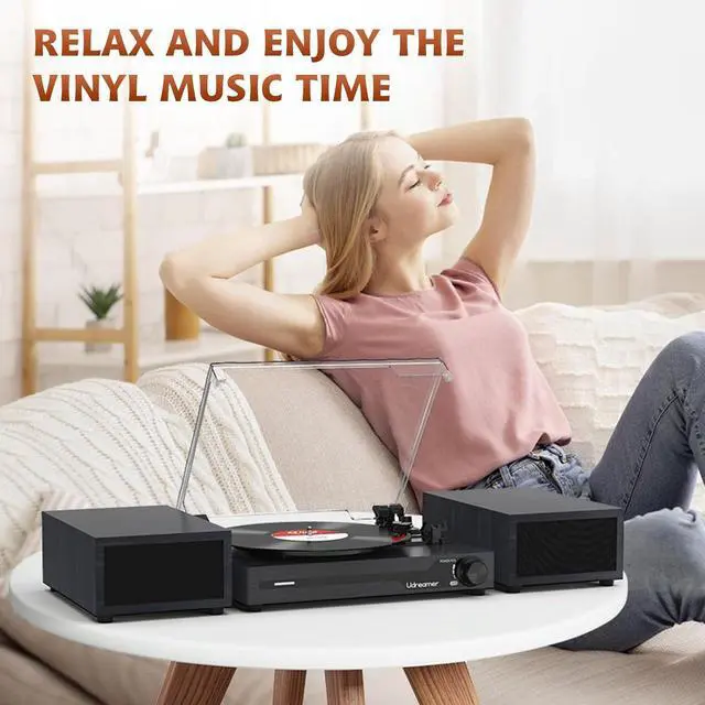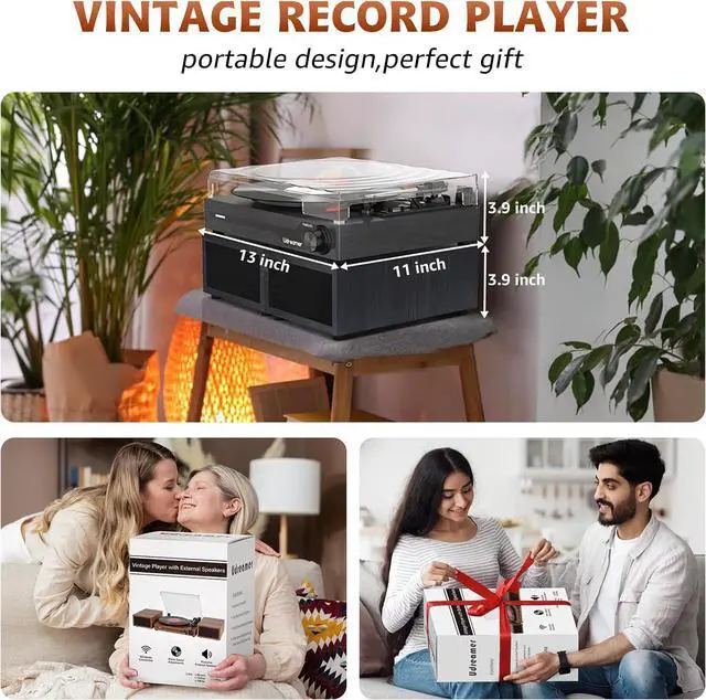 4.4 out of 5 starsVinyl Record Player with Speakers,Bluetooth Portable Turntable for Vinyl Records,Phonograph LP Player with 3 Speed USB RCA in Vintage Black