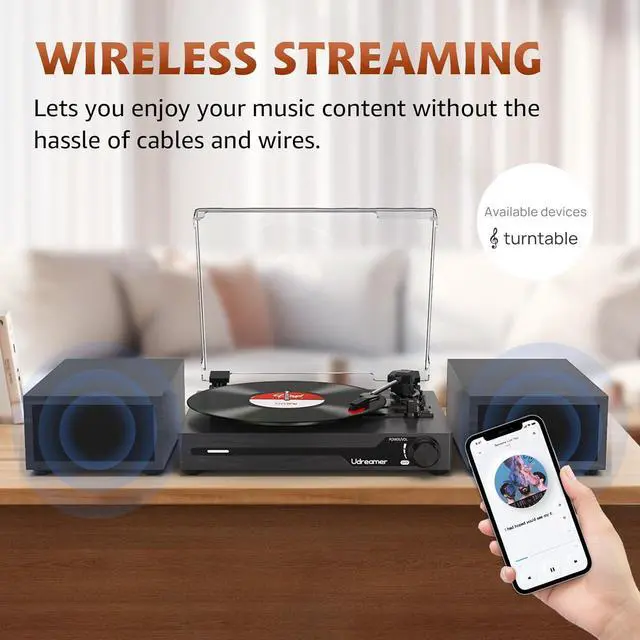 The newest Bluetooth 5.3 Version of this record player makes the connection faster and more stable.