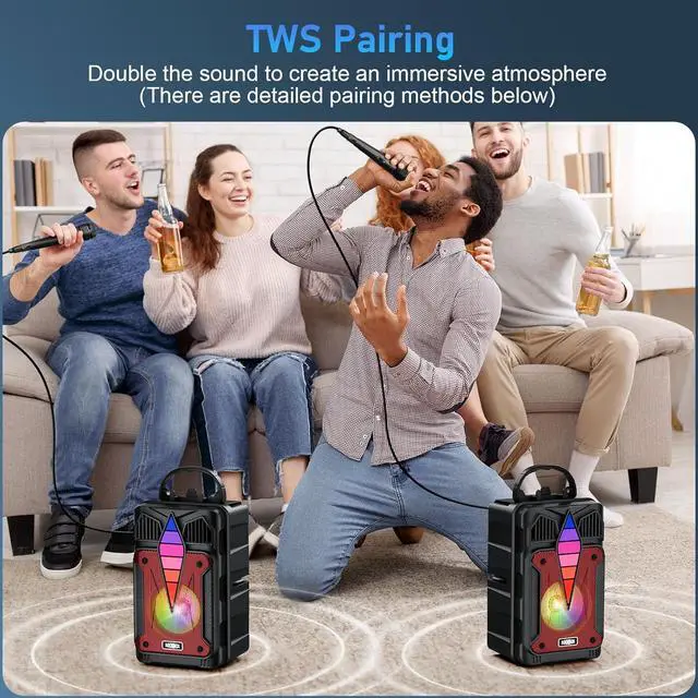 Portable Bluetooth Speaker with Voice-Controlled RGB Multi-Color Rhythm Lights, Supports TWS/USB/TF/FM/AUX, Suitable for Home Party or Outdoors (Red)