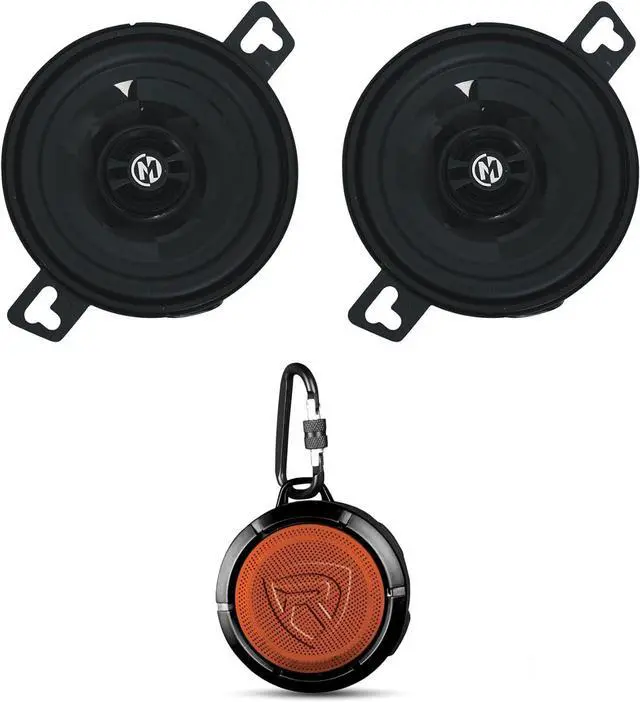 The Memphis Audio PRXP3 3.5" 2-Way Car Speakers and Rockville RPB1 Waterproof Portable Bluetooth Speaker provide an unbeatable combination of in-car sound enhancement and versatile outdoor audio. The Memphis Audio PRXP3 speakers bring top-tier audio performance to your vehicle, with a 30-watt peak output and integrated 6dB crossover, ensuring warm, balanced sound. Their pivot silk dome tweeters and graphite-reinforced polypropylene cone provide precise audio quality and are engineered to fit in most factory car speaker locations, making them ideal for a quality audio upgrade.