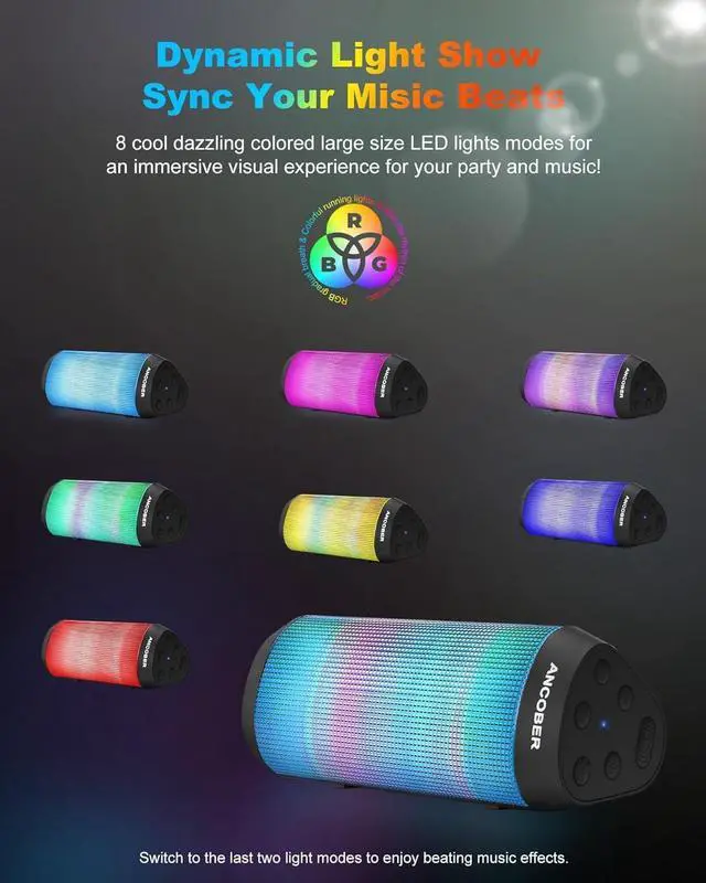 Elevate your music listening experience with the ANCOBER portable Bluetooth Speaker, a versatile and feature-packed speakers bluetooth wireless designed to enhance your audio enjoyment. Immerse yourself in crystal clear stereo sound of this portable speaker, complemented by captivating colorful light modes that bring a visual dimension to your music.