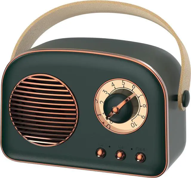 Small But Mighty The Oraolo small retro Bluetooth speaker is only 4.1*1.9*2.5 inches, and it's incredibly lightweight and easy to carry. Portable Bluetooth speakers adopt a 5W stereo audio driver and a hidden passive radiator on the bottom to deliver surprisingly rich audio and clear sound. With an elegant PU handle, it can be taken with you wherever you go, making it perfect for on-the-go music enthusiasts.