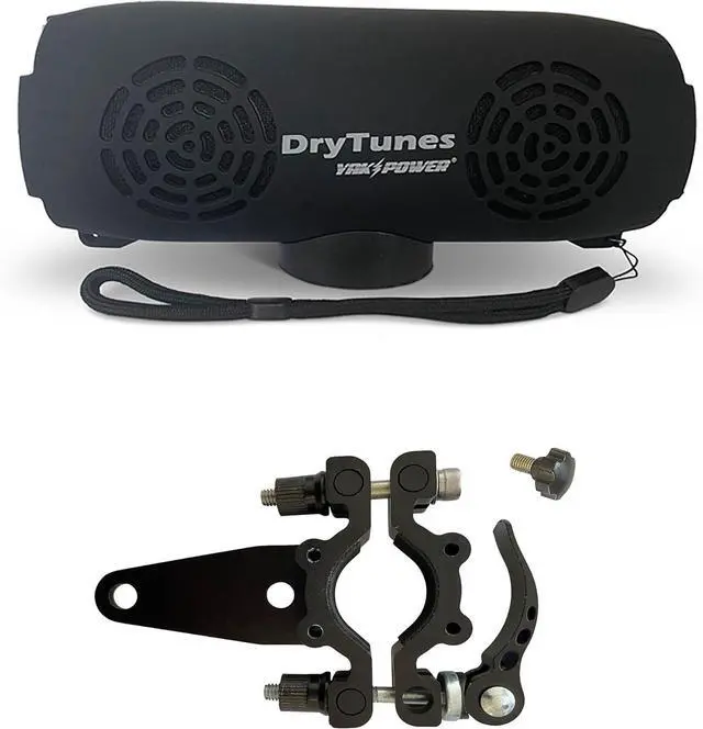 The DryTunes portable Bluetooth speaker from Yak Power is designed to go wherever you go. The integrated 1/4-20 insert makes them easy to attach to handlebar and scooter stems using our Stem Clamp Kit or any other 1/4-20 Action Mount