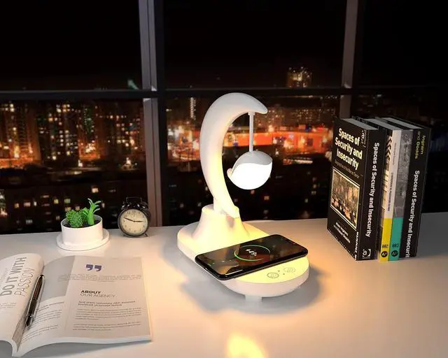 This desk lamp with wireless charger and Bluetooth speaker function is a very innovative design.You can charge your phone while listening to music (even if you don't take off the case, you can charge it directly), and you can also use it as a night light. Bring great convenience to our life.