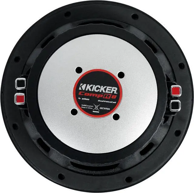 Description of 48CWR84: Now even more efficient and sporting a slick, blacked-out look, the 2021 CompR sub is the very model of power and reliability. The CompR Eight-Inch Subwoofer is a 4O dual voice coil design, making it easy to get the most out of your amp. Our signature red double stitching makes an outstanding bond between the improved Santoprene surround and polypropylene woofer cone. Revolutionary SoloKon technology joins the cone to the vented back brace, creating a single integrated unit that both cools the motor and eliminates distortion. To make our subs even more reliable, KICKER engineers developed Forced Air Cooling to help our subs run 25% cooler than before. The CompR Eight-Inch Subwoofer works best with a sealed or ported enclosure and 300 watts of recommended power.