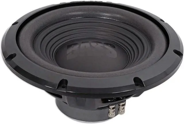 Polypropylene and mica cone with poly-foam surround. Stamped steel frame. Power handling: 50-250 watts RMS. Peak power: 750 watts. Sensitivity: 87.9 dB. Frequency response: 22-200 Hz. Top-mount depth: 5-5/16". Sealed box volume: 1.09 c. Ported box volume: 1.91 cu. ft.