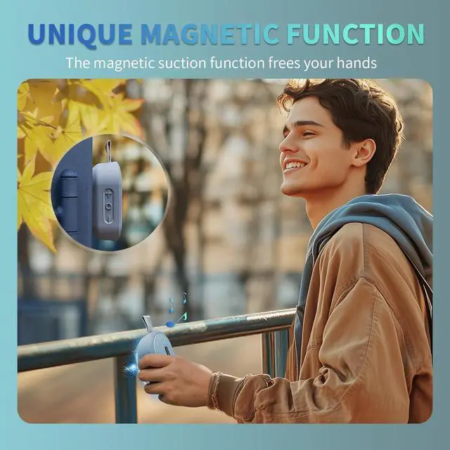 Non-contact Magnetic Design: The magnetic Bluetooth speaker has a strong magnetic suction function. It adopts a space separation adsorption design, which is firmly adsorbed, and easy to remove, which an be adsorbed on Iron and steel products