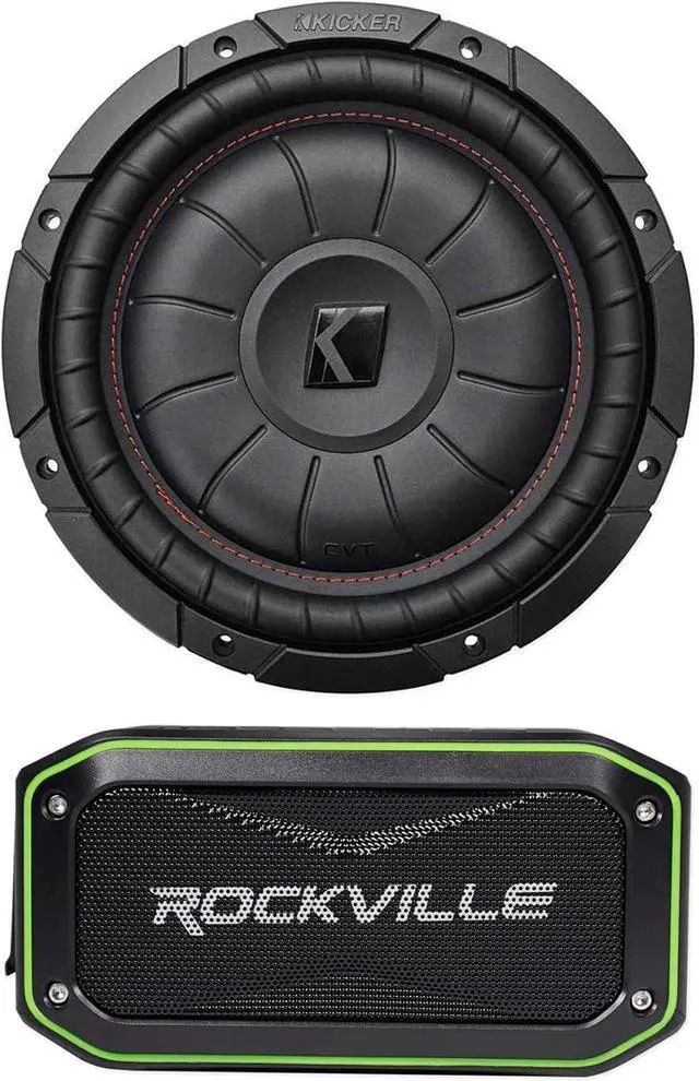 Elevate your audio experience with our premium bundle, featuring the Kicker 43CVT104 Subwoofer and Rockville ROCK ANYWHERE Bluetooth Speaker. Tailored for audiophiles and outdoor enthusiasts alike, this combo delivers exceptional sound quality and versatile functionality.