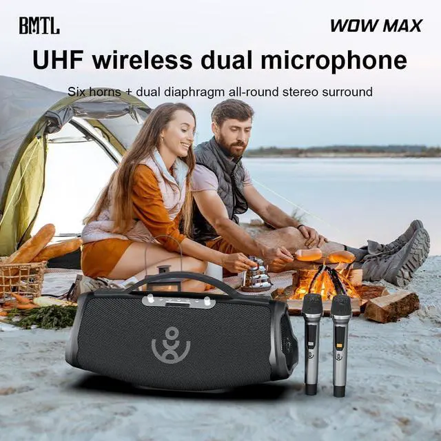 Includes 2 Microphones for Singing & EventsTake your parties to the next level with two included microphones, making this Bluetooth speaker ideal for karaoke, live singing, and interactive events. Perfect as a party speaker or outdoor speaker Bluetooth, it turns any gathering into an exciting celebration.