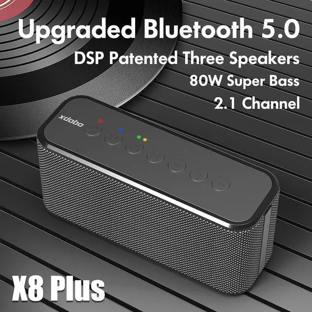 80W Powerful Stereo Sound & 360° SurroundThe XDOBO X8 Plus portable Bluetooth speaker delivers up to 80W of clear stereo sound with punchy bass and 360° surround performance. Perfect as a party speaker, computer speaker, or outdoor Bluetooth speaker, it brings immersive audio that rivals traditional sound bar or boombox systems.