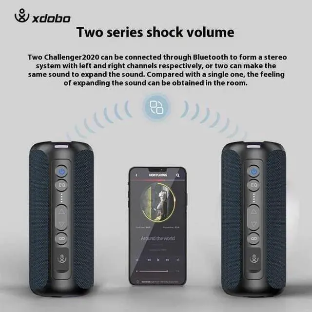 50W Small Bluetooth Speaker with Deep BassEnjoy powerful 50W stereo sound with enhanced bass in a compact design. The XDOBO SINOBAND Challenger 2020 portable Bluetooth speaker is perfect as a desktop computer speaker, party speaker, or outdoor Bluetooth speaker, delivering immersive sound that rivals boombox and sound bar systems.