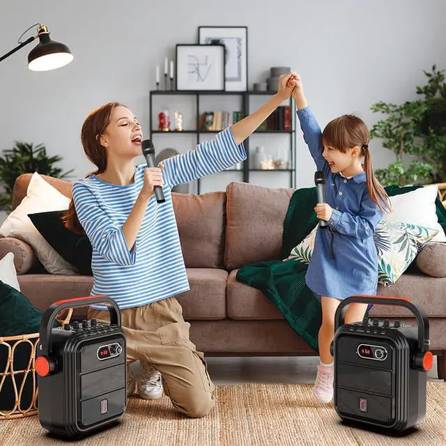 Multi-function Karaoke Machine : The product has a built in Bluetooth 5.0 provide the more stable transmission and longer distance, it also supports Micro TF card and Flash USB connectivity, Works with all of your favorite devices like iPhone, Android mobile phone, iPad, Tablet, PC, no cables needed , Great for churches, small parties, schools, class rooms, gyms, corporate meetings & presentaions