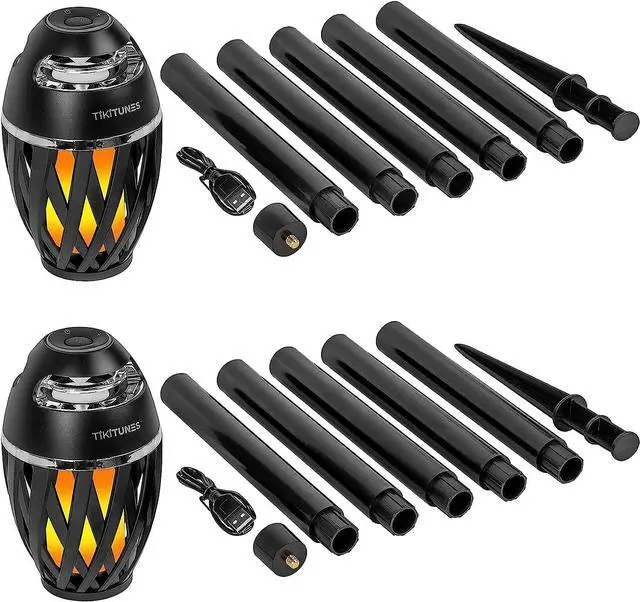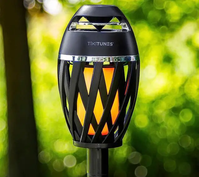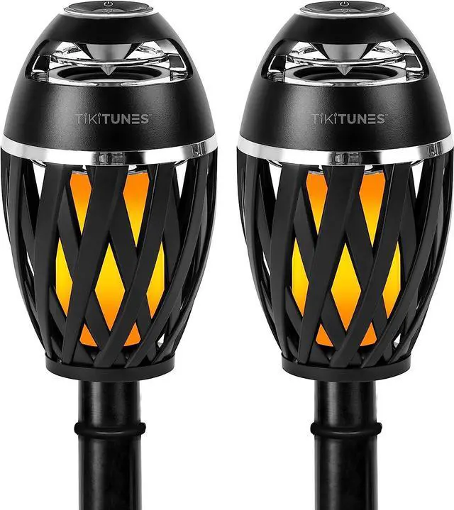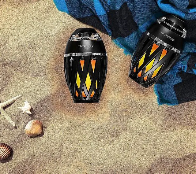 BLUETOOTH SPEAKER Enjoy quality audio and an atmospheric LED flickering flame with the award-winning TikiTunes! With a 6-hour play time and rechargeable batteries, this indoor and outdoor speaker is great for use at home or on-the-go! Recharge the TikiTunes speakers with the included Micro USB cables.