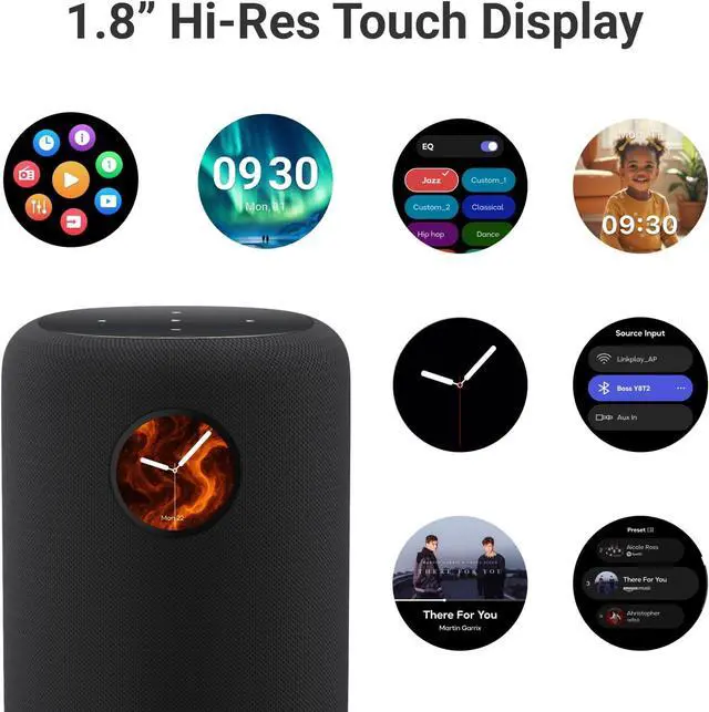 Touch what you hear - 1.8 round display shows album art, time, track info and gives instant controlplay/pause, skip, sources, Quick EQ, presetsno phone required.