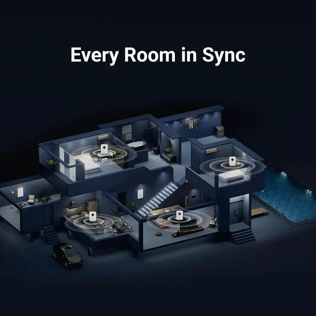 AI RoomFit calibration - One tap optimizes sound for your space and placementbalanced bass, clean vocals, and engaging detail wherever you set it.