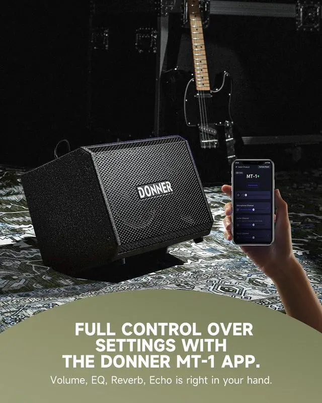 The Donner MT-1 APP can remote-control the MT-1 PA system. It is compatible with Android and iOS and allows for adjusting volume, EQ, Reverb, Echo, etc. Start exploring right now!