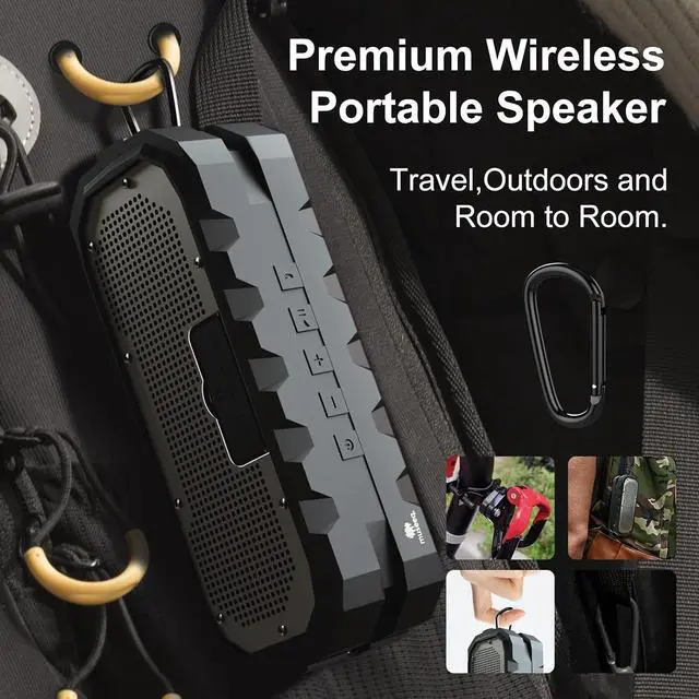 Featuring Water Resistant IPX 5 protection Bluetooth speaker against rain, dust, snow, and shock. Perfect for Camping, Hiking,Snorkeling, Biking and other outdoor activities.