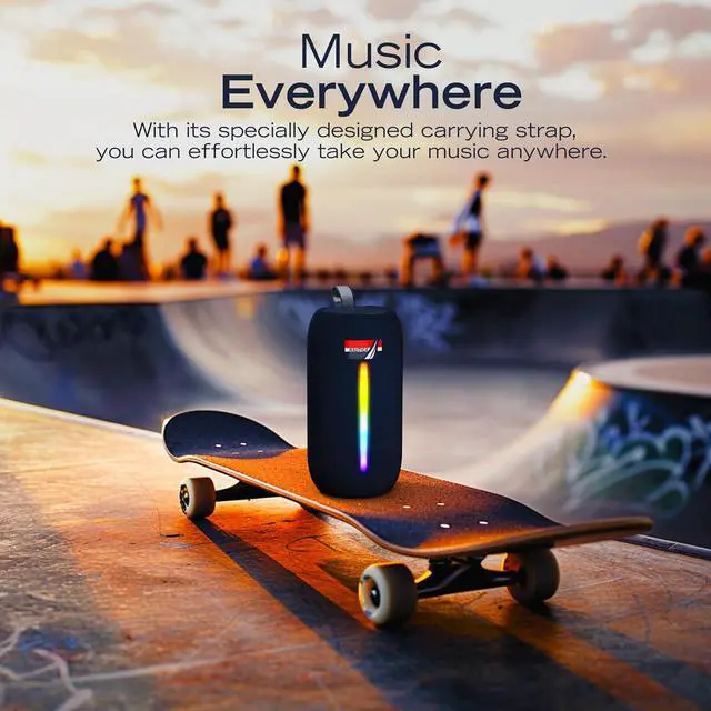 • Portable Design: This small Bluetooth speaker comes with a convenient strap, so you can attach it to your bike, hang it from your backpack, or even secure it to a tree branch; Plus, its tough, durable design helps ensure your music never stops