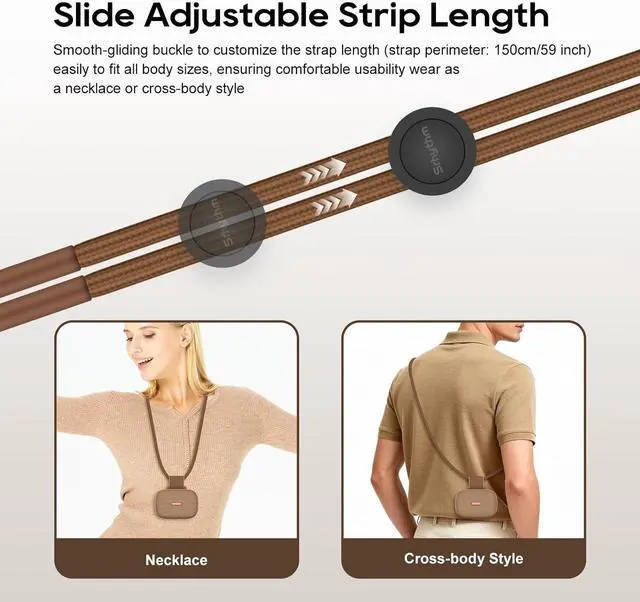 Slide Adjustable Strip Length: Smooth-gliding buckle to customize the strap length (strap perimeter: 150mm/59 inch) easily to fit all body sizes, ensuring comfortable usability wear as a necklace or cross-body style.