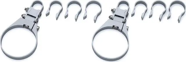 Universal articulating mounting clamps fit virtually any bars between 7/8" and 1-1/2", brackets are patent pending