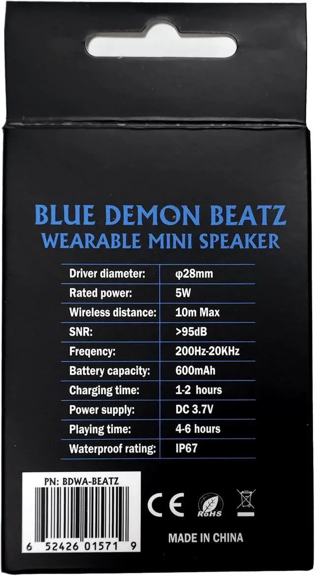 PORTABLE DESIGN: Compact Blue Demon Mini Beatz Speaker weighs only 64 grams and measures 75x47x34mm, making it perfect for on-the-go audio enjoyment.
