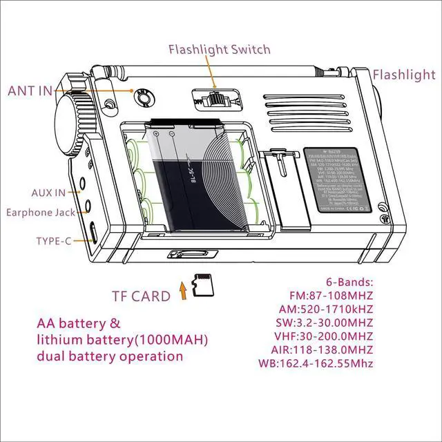 • Digital recording: Can record radio stations or record externally. Save it in the TF card and delete the recordings you don't like when playing back the recordings. Equipped with high beam flashlight and table lamp. It is a good tool for our outdoor travel