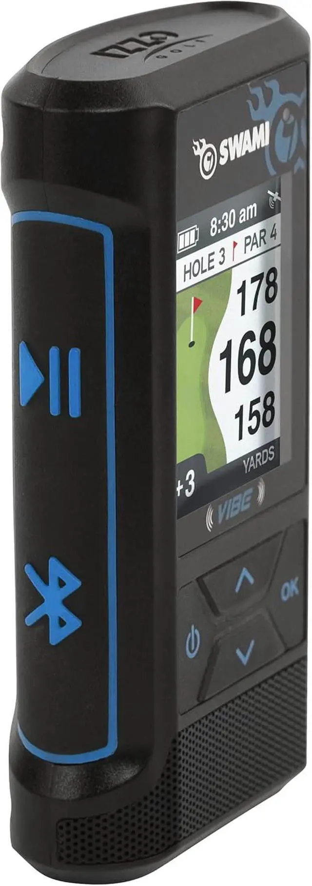 Golf GPS: Precise Golf GPS device with an integrated with Bluetooth Speaker. Music can be played from your phone or loaded onto the speaker itself
