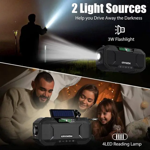 IPX5 WATERPROOF BLUETOOTH SPEAKERCompared with radios on the market, KAYINOW'S RADIO is unique in that it is not only a emergency weather radio but also a Bluetooth speaker. It supports Bluetooth connection and TF card playback, and can play music from mobile phones. High-quality speakers must It will bring you a wonderful listening experience, if you are preparing for outdoor activities such as camping, parties, boating, etc., taking it with you will make your journey more interesting. If yo