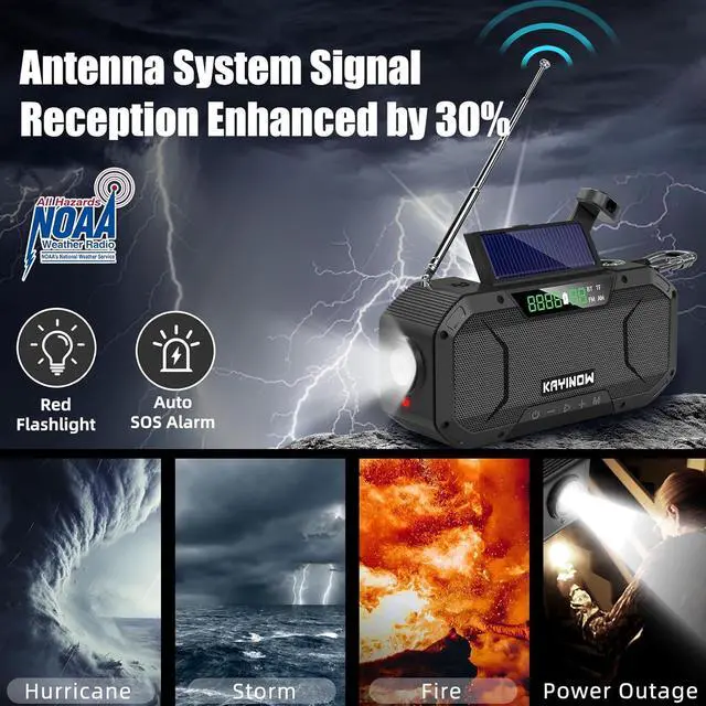 The retractable antenna boosts signal reception dramatically, ensuring you never miss critical weather warnings. With integrated FM/AM/WB/NOAA fullband reception, it supports one-touch automatic scanning to lock onto weather disaster broadcasts instantly. Manual volume control lets you adjust sound clarity, while holding the bottom SOS button triggers alarm+flashing red lightquickly drawing rescue personnels attention in emergencies.