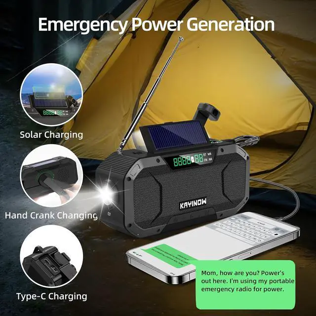 The 5000mAh battery supports three emergency charging methods: solar power, hand-crank charging, or Type-C charging. At maximum volume, it delivers 35 hours of radio mode runtime and 20 hours of Bluetooth mode runtime. The high-brightness flashlight and reading light provide 60 hours and 120 hours of operation respectivelyperfect for hurricanes, earthquakes, or nighttime scenarios, safeguarding your safety and keeping you connected to the outside world.