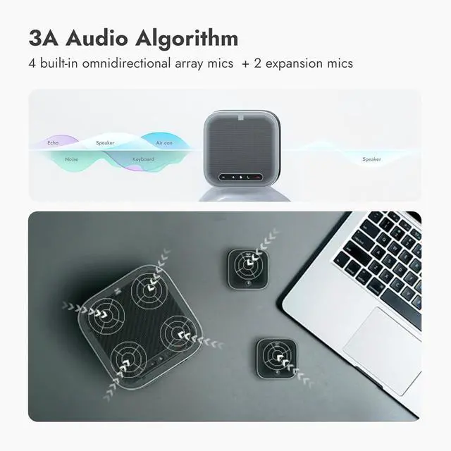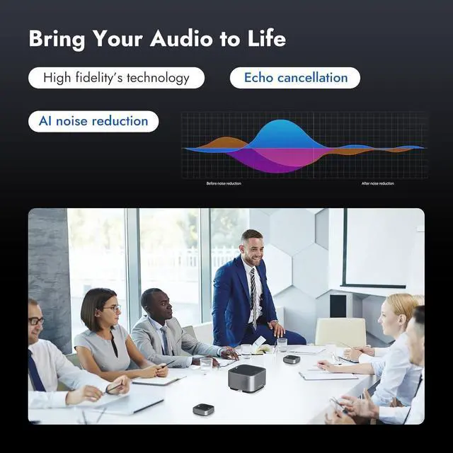 Portable and Compact Design: Lightweight and travel-friendly, this speakerphone is perfect for professionals on the go or setting up in any workspace.