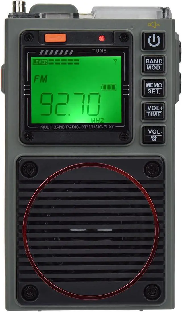 Portable Radios; With a carry strap included to help with portability, this small Shortwave radio built with a compact design (3.6 x 2.1 x 1.1 in) that can easily into handbag. Features a backlit LCD screen, sleep timer and alarm clock function making it an ideal companion for camping and traveling trips. It supports flashlight lighting and SOS alarm emergency functions and is an emergency product that can be used both at home and outdoors.
