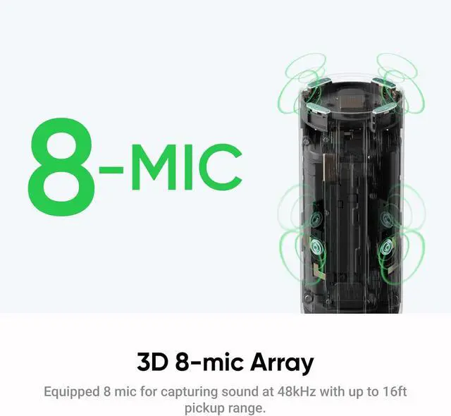 3D 8-Mic Array & 16ft Voice Pickup: Equipped with 8 microphones, Insta360 Wave captures voices up to 16 ft away at a 48kHz premium sampling rate.