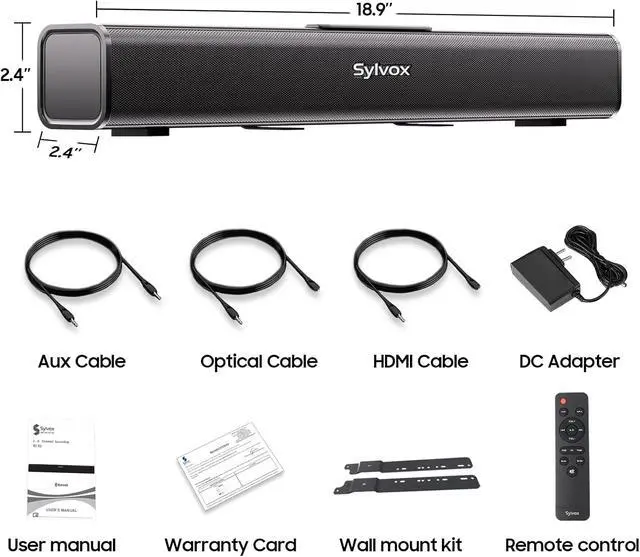 1 All-in-one soundbar with built-in dual bass port design: The soundbar speaker is designed for a full range of use, including TV watching, music listening, video gaming and more. The dual bass port design enhances the bass effect, bringing you a more immersive experience.