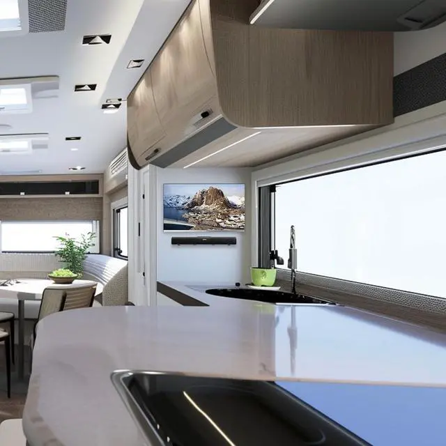 Designed for RV TV and Mobile Space: This soundbar speaker is designed for RVs and mobile spaces. It is small in size and lightweight, making it easy to install and carry. With its built-in dual bass port design, it can bring you a better audio experience in your RV or mobile space.