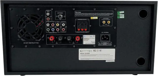 Repeat and shuffle playback on USB/SD card inputs. Bluetooth compatibility allows for wireless connection to any A2DP device. FM tuner with auto scan. Bass and treble controls. Cooling fan. Voltage: 110v. Peak Power: 4000 Watts. Inputs: RCA, USB, SD Card, Bluetooth (32 GB Max). Audio Outputs: RCA (2CH). Video Outputs: RCA, YUV, RGB. LED Effects Outputs: 2
