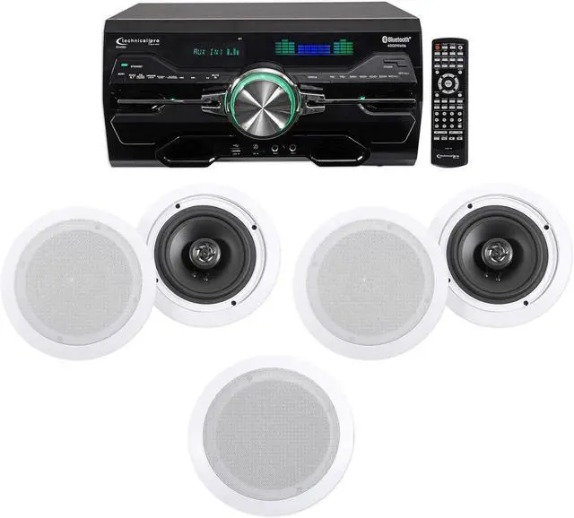 Package Includes: (1)Technical Pro Professional 4000w Receiver/Amplifier/DVD Player Bluetooth/USB/FM. (3)Pair RockvilIe HC655 6.5" 500 Watt In-Ceiling Home Theater Speakers 8 Ohm. Features: Technical Pro Professional 4000w Receiver/Amplifier/DVD Player Bluetooth/USB/FM. Auto region playback (region free) and PAL/NTSC switchable. Display that shows key information about playback