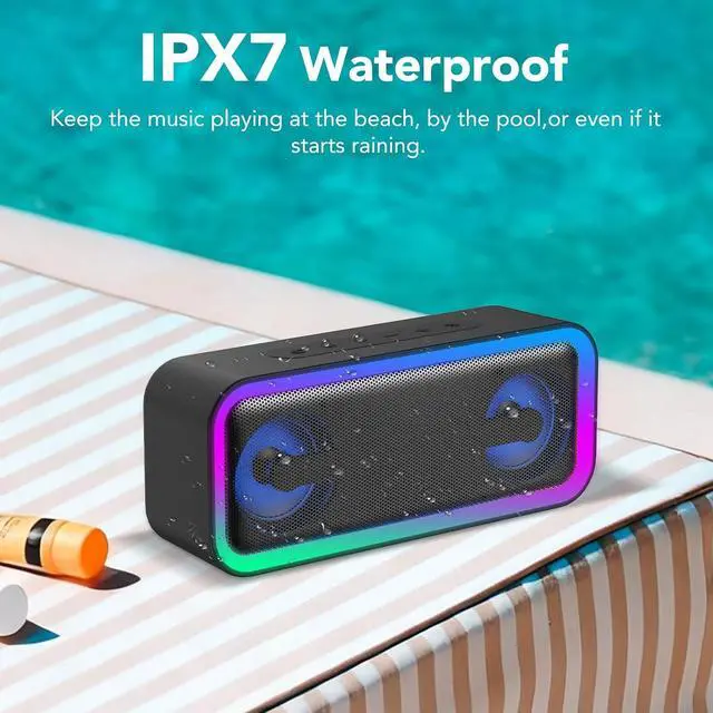30H Battery LifeThis bluetooth speakers features a built-in 4000mAh lithium battery delivering up to 30 hours of playtime (at 40% volume with lights off), sufficient for multiple parties or an entire weekend away. Its intelligent energy-saving design allows you to switch off the RGB lights with a single button press to extend battery life. Please note: The outdoor speaker bluetooth's actual battery duration will vary depending on volume levels and lighting usage.