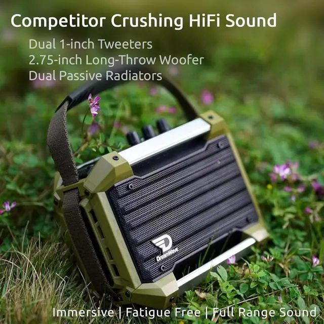 [Competitor Crushing HiFi Sound] Dual 1 inch silk dome tweeters for exceptionally clear and smooth high frequencies, 2.75 inch long-throw woofer with dual passive radiators deliver precise vocals and powerful deep bass down to 50Hzcombining compact design with immersive, fatigue free, full range sound