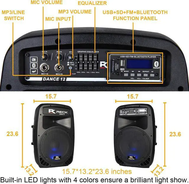 Wide range of applications: 150-Watt RMS,1000 Watts Peak; 12" Woofer and Compression Driver with 1.35" Titanium Diaphragm; Built-in equalizer; Digital LCD Screen; Master volume controls, Mic, Line volume controls. Great for wedding, meeting, speeches, churches, class teaching, gymnastics, conference, home theater, etc. Easily connect to multiple musical instruments.