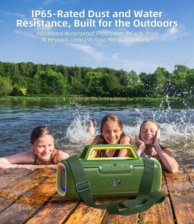 --140W Peak Room-Shaking Sound with 2 Subwoofers & True Deep Bass--Stop just listening to music and start FEELING it. This portable Bluetooth speaker delivers a powerful 140W peak output, driven by dual 3-inch woofers that punch out visceral, floor-shakin