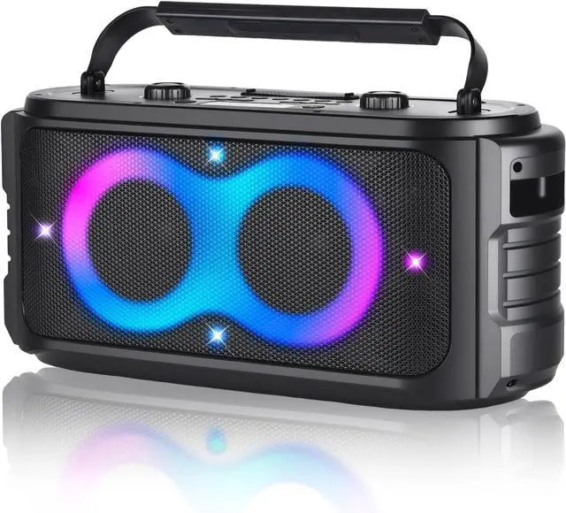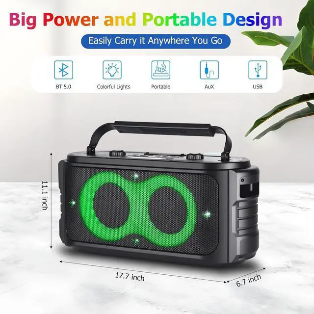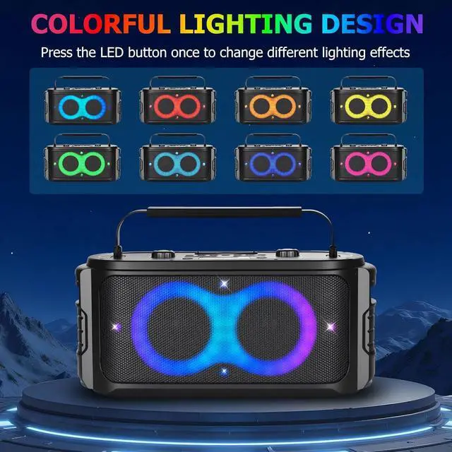 Bluetooth Speaker with Dynamic lightsThe A86 Large bluetooth party speaker is designed with multiple dynamic RGB colorful light modes to light up every corner of the party space, and Colorful LED lights can change the lighting effect according to the rhythm of music, which colourful and vibrant can give your home party, beach, camping or outdoor travel an exciting atmospher. You can easily adjust lights mode and close the LED lights with click LED control button.